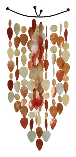 Fair trade artisan made.Works great indoors or out.Eco chic.Fantastic gift.Made with beautiful, naturally luminescent capiz shells. This large chime is made of leaf shaped Capiz shells in translucent Autumn shades of red, orange, and yellow. The shells sparkle in the light and the wind creates a gentle tinkling sound, making a beautiful visual and aural statement in any room or garden. Some 75 years ago several fisher families moved from Madura to Java's Eastern coast because of the profusion of sea life. During stormy weather, after all the nets were mended, they began making handicrafts from discarded shells. Capiz shells, or Jingle Oysters, grow like weeds in shallow sea beds. Before the fishermen got creative, they were only collected for the meat and the shells were discarded. Now nothing is wasted. Our beautiful line of capiz shell strands and chimes are designed by Andrea Phillips; the shells are sourced directly from the fishermen and all chimes are individually hand made in our in-house Fair Trade workshop in Bali. zenDeluxe is a proud member of the Fair Trade Federation.